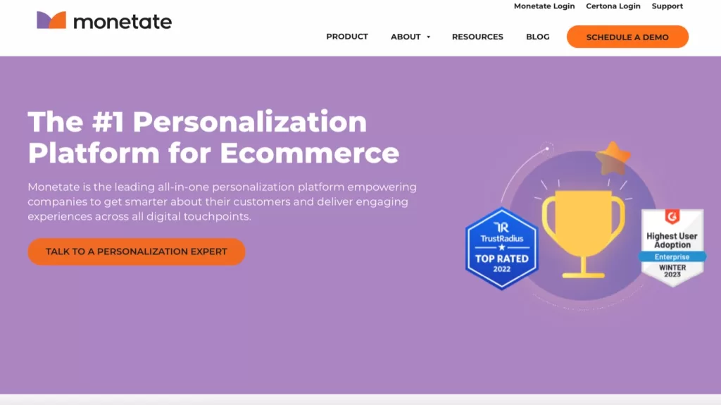 Es una plataforma de personalización y optimización de experiencias de usuario en línea. Permite a los especialistas en marketing crear experiencias personalizadas para los usuarios en función de su comportamiento y preferencias. Monetate utiliza la inteligencia artificial para analizar los datos de los usuarios y crear experiencias personalizadas en tiempo real. Por ultimo, la plataforma también ofrece pruebas A/B y herramientas de análisis para ayudar a los especialistas en marketing a optimizar sus estrategias y mejorar la conversión.